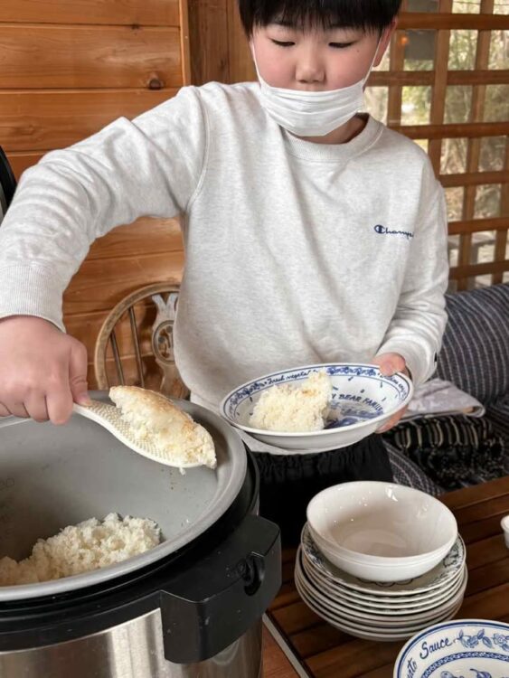 今回も小学生、大学生、80代までの多世代で調理を楽しみました。前日準備も含めると、総勢16名という大人数で取り組めたありがとごはん。本当に有難いです!