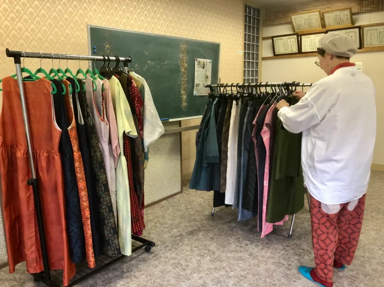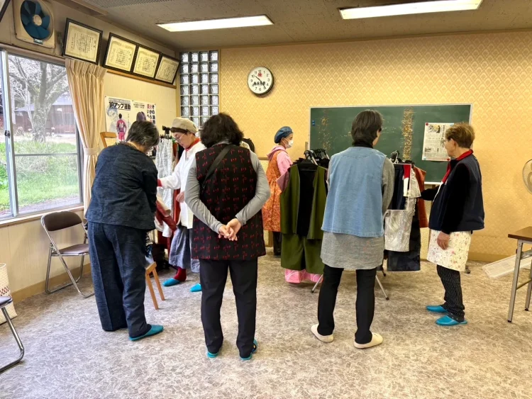 集落センターでは、着物リメイクのファッションや、野菜、手芸品、手作り品、雑誌や